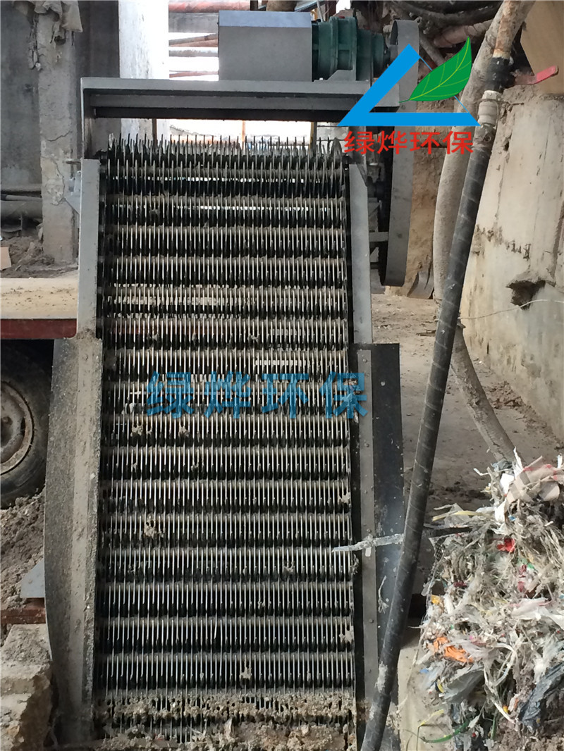 废水经过人工格栅预先处理浮在水中有较大颗粒及废料,经人工格栅过滤后的废水中仍存有废料,就采用回转式机械格栅来处理,按现有的污水槽沟宽1200mm,设备宽1100mm,栅距10mm,沟深3000mm,材质采用全304不锈钢。回转式机械格栅主要是以去除粗大颗粒如塑料袋、树枝、叶等。经60目尼龙斜网收浆.以保证浆的回收量和出水水质,降低后续工艺的负荷,回收的纤维回用生产。再经提升泵至集水井停留时间6rain短时调节水量,进微滤机(滤网规格为50~100目),去除细小纤维后,一部分水进清水池回用于洗浆和抄纸。浆渣可用于箱板夹层,另一部分水进悬挂链生物曝气塘进一步处理后,生化污泥和水进人沉清池。沉清后水进人稳定池排放或经静电杀菌后回用。沉清池沉淀的污泥部分回流到曝气池,剩余污泥进污泥储池,在污泥储池中消化后,上清液回曝气池处理。污泥经长时间存后作农肥用。