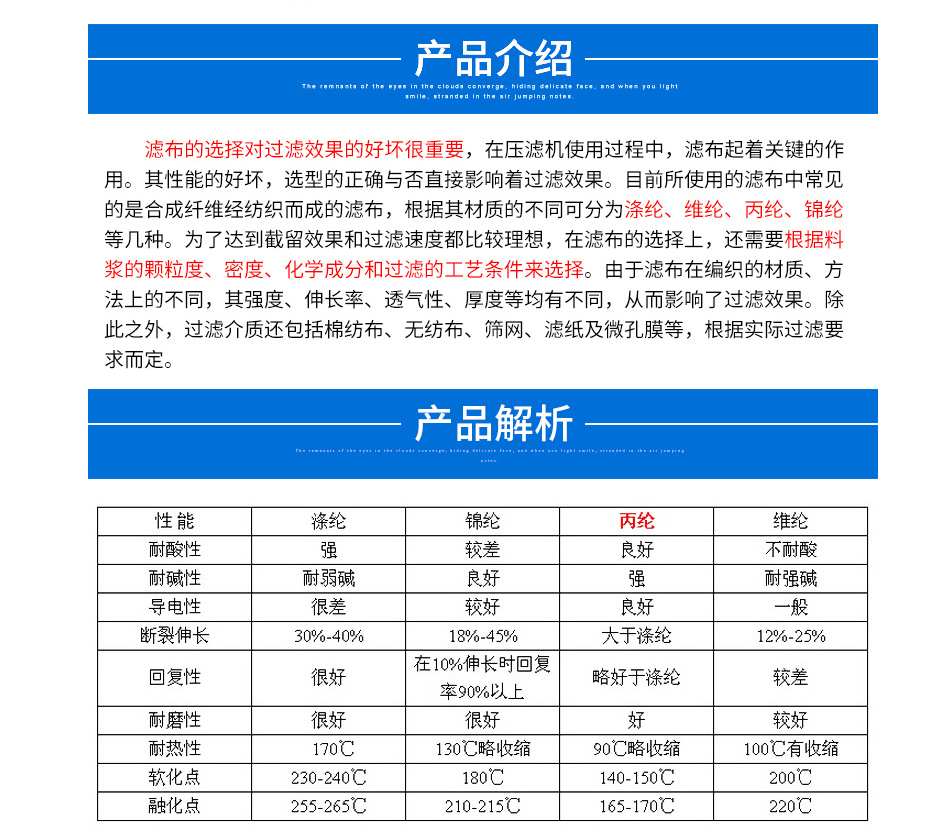 产品名称:压滤机滤布