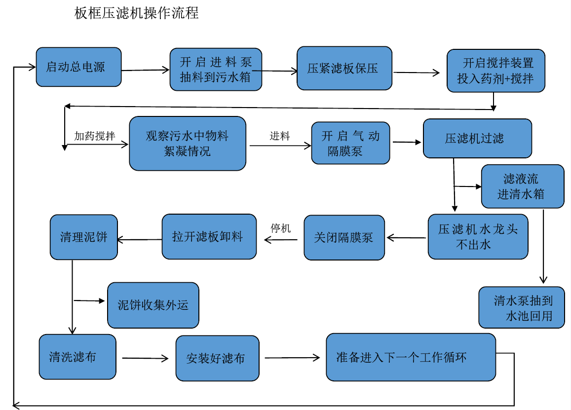 一体化压滤机因其框架一体式设计和车载移动性,下面的PP槽箱体或是做成不锈钢箱体,箱体分为絮凝反应区、搅拌区、清水区、污泥收集区,是针对小型污水处理的理想选择。其高效分离能力、灵活部署、简便操作与维护等特点,广泛应用于建筑、电镀、印染、纺织、油墨、玻璃磨边、抛光打磨、食品、农业、餐饮等行业,带来显著的经济和环境效益。